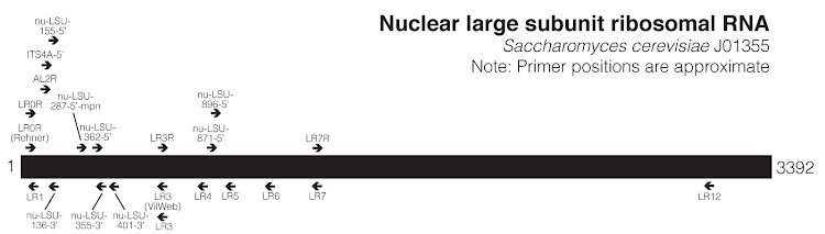 | LR3R | F | 638-654 | GTCTTGAAACACGGACC | Vilgalys Website? |